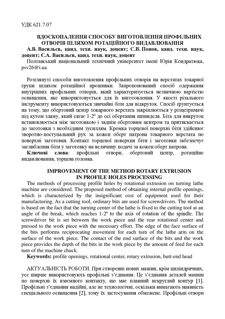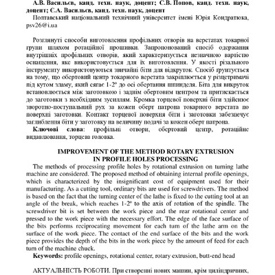Вдосконалення способу виготовлення профільних отворів шляхом ротаційного видавлювання