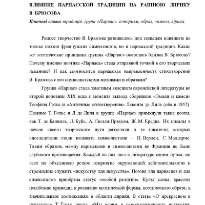Влияние парнасской традиции на раннюю лирику В. Брюсова