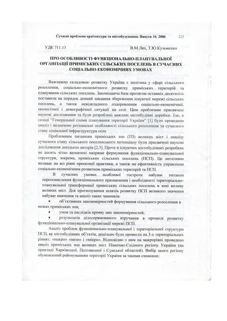 Про особливості функціонально- планувальної організації приміських сільських поселень в сучасних соціально-економічних умовах