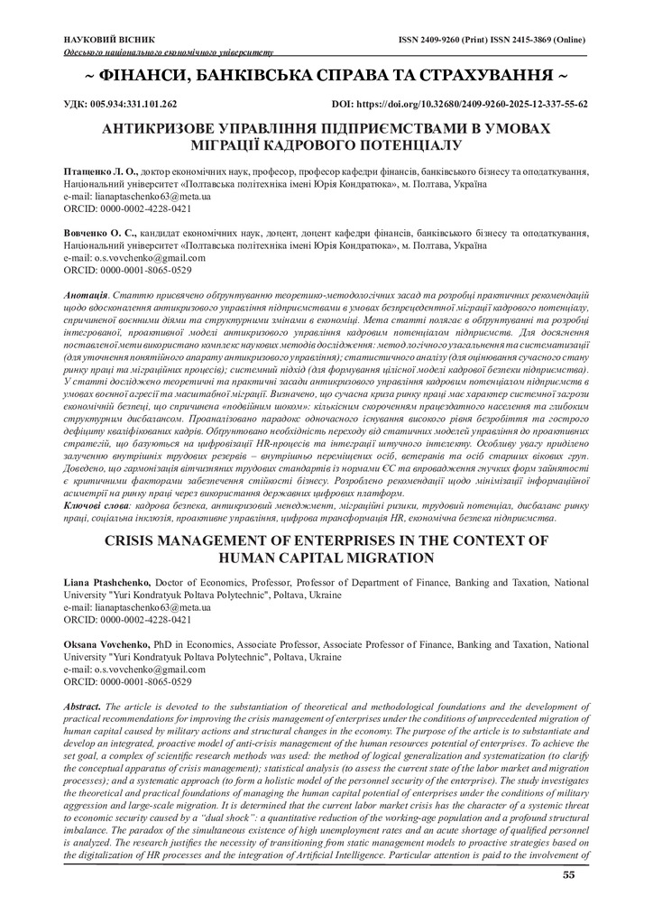 Антикризове управління підприємствами в умовах міграції кадрового потенціалу
