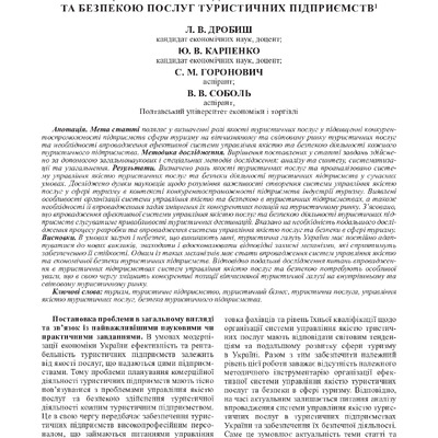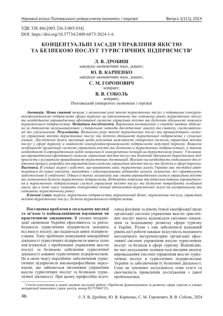 Концептуальні засади управління якістю та безпекою послуг туристичних підприємств
