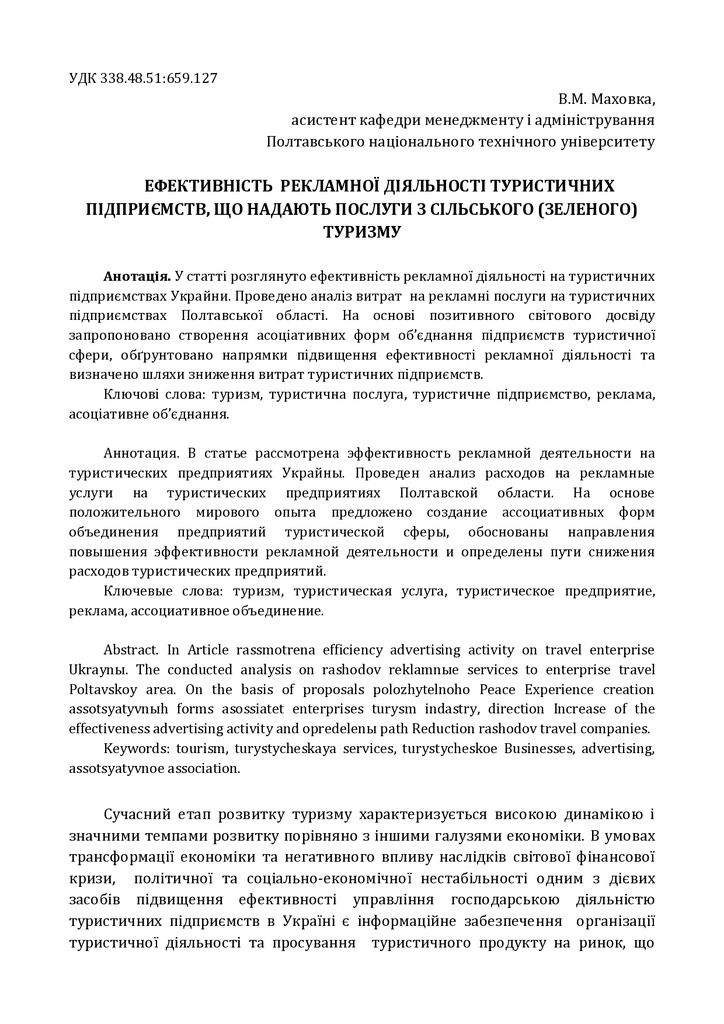 Стаття 2021/07/06Ефективність рекламної діяльності туристичних підприємств, що надають послуги з сільського (зеленого) туризму