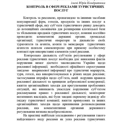 Контроль в сфері реклами туристичних послуг