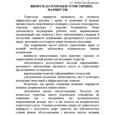 Туристські маршрути впливають на розвиток інфраструктури регіонів і країн, їх економіку й місцеву...