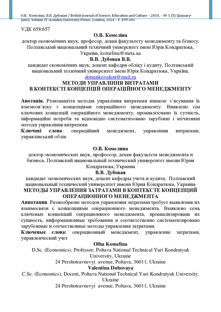 Методи управління витратами в контексті концепцій операційного менеджменту