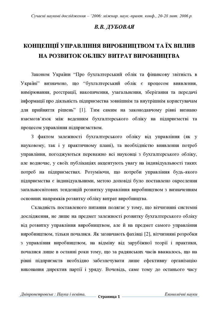 Концепції управління виробництвом та їх вплив на розвиток обліку витрат виробництва
