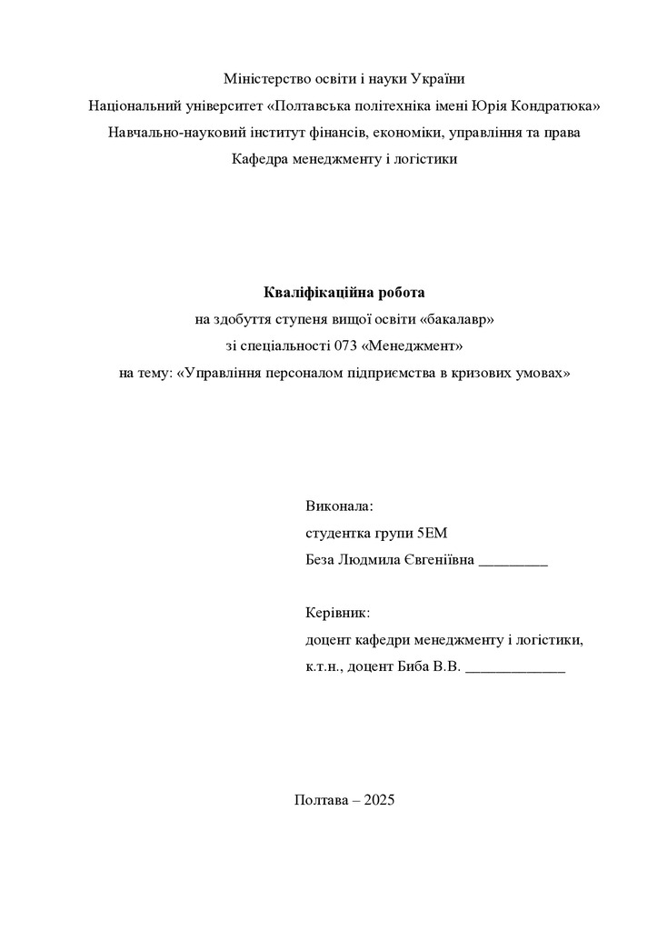 2026/02/02Управління персоналом підприємства в кризових умовах