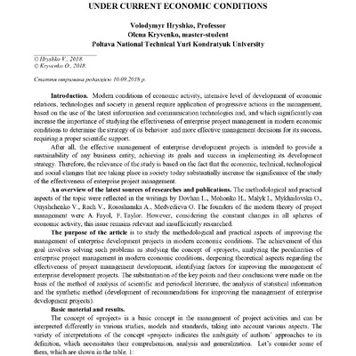 The concept of «project» is analyzed, peculiarities of management of projects of enterprise development in modern economic conditions are analyzed, in-depth theoretical aspects on the efficiency of...