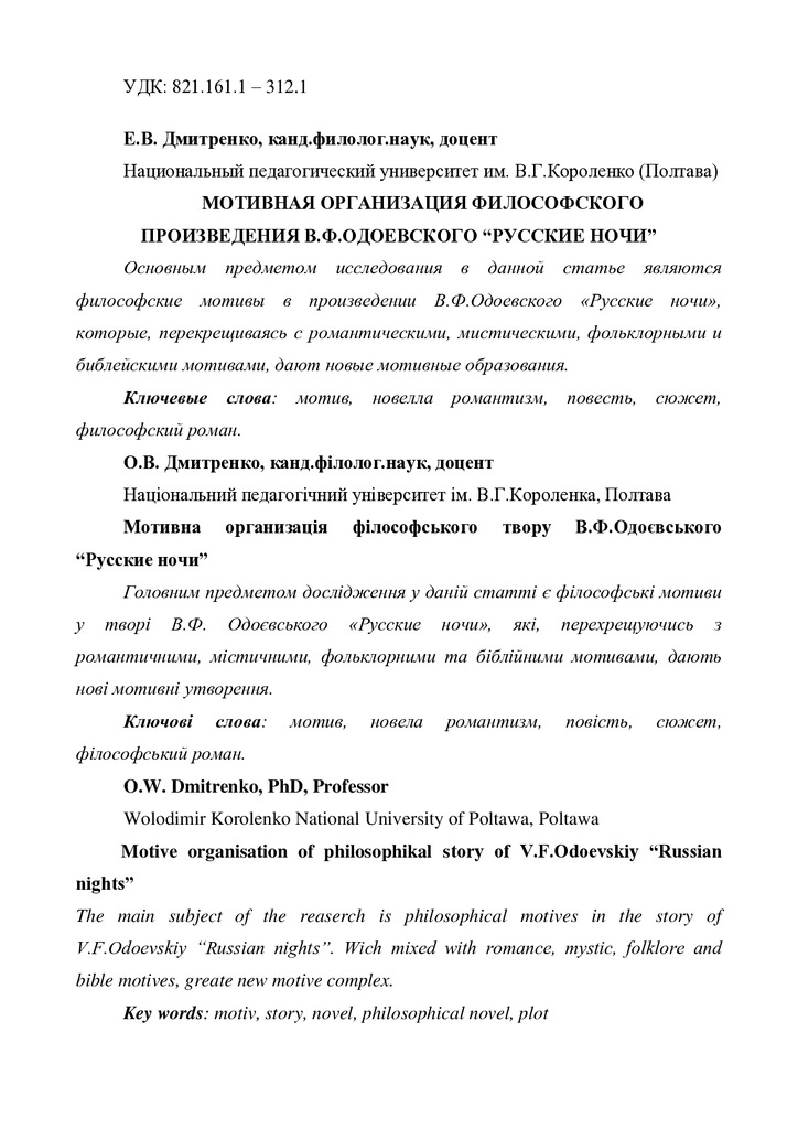 Основным предметом исследования в данной статье являются философские мотивы в произведении В.Ф. Одоевского «Русские ночи», которые, перекрещиваясь с романтическими, мистическими, фольклорными и би...