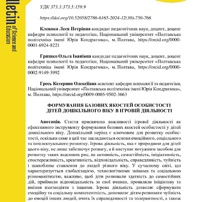2025/01/22Формування базових якостей особистості дітей дошкільного віку в ігровій діяльності