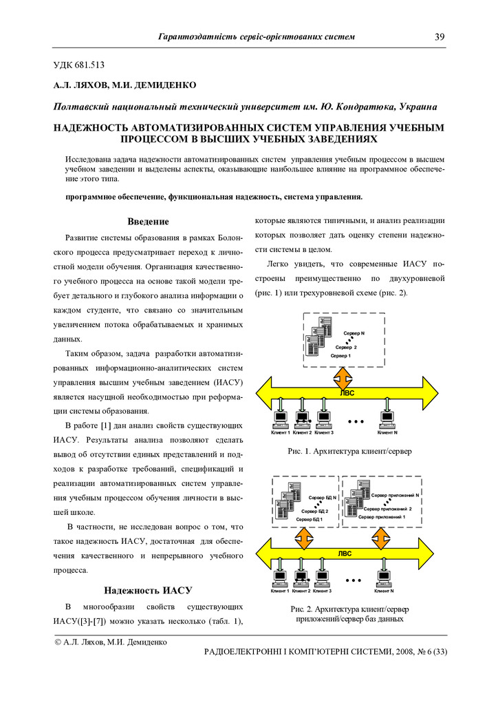 Надежность автоматизированных систем управления учебным процессом в высших учебных заведениях