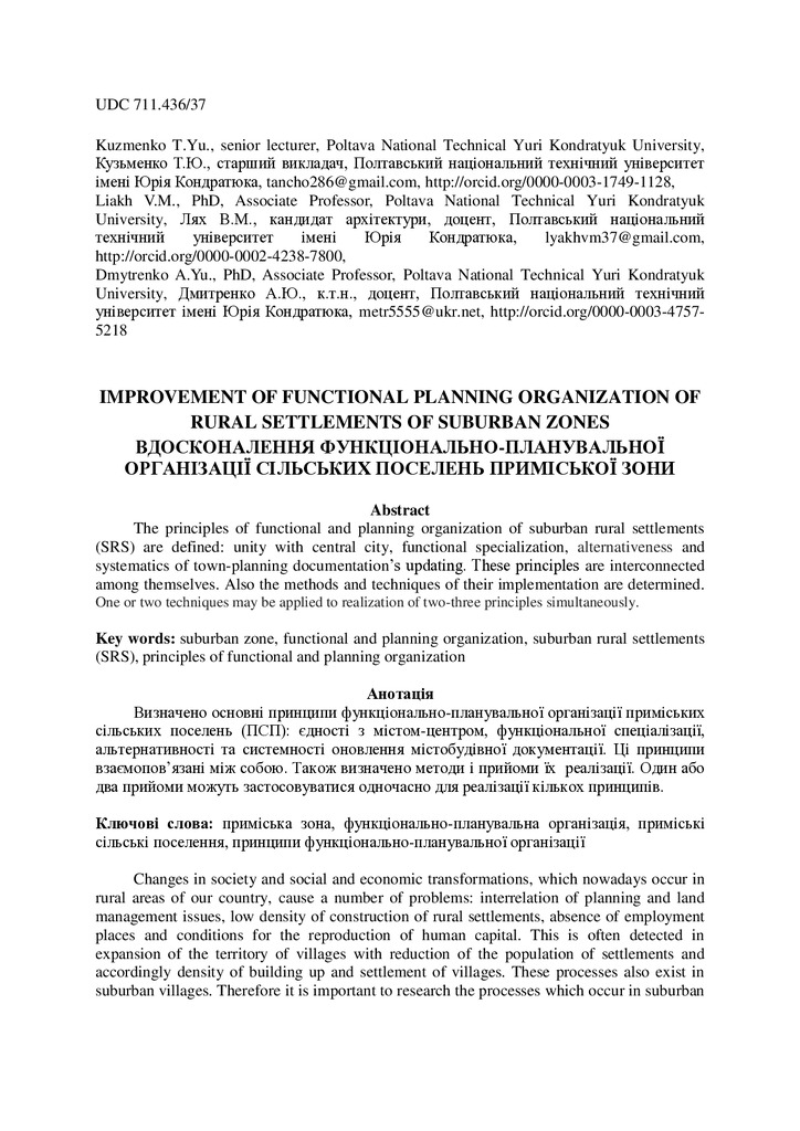 2017/09/04Про особливості функціонально- планувальної організації приміських сільських поселень в сучасних соціально-економічних умовах