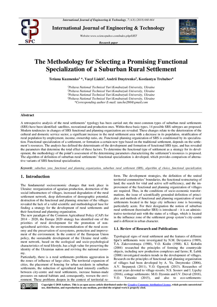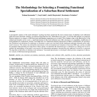 2020/08/27Методика вибору функціональної спеціалізації приміських сільських поселень