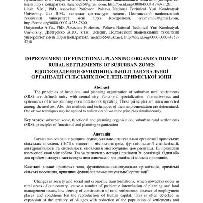 2019/05/08Вдосконалення функціонально-планувальної організації сільських поселень приміських зон