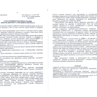 Сучасні вимоги до проектування центрів дитячої та юнацької творчості