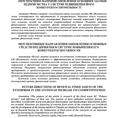 Стаття 2019/06/08Перспективні напрями оновлення основних засобів підприємства у системі підвищення його конкурентоспроможності