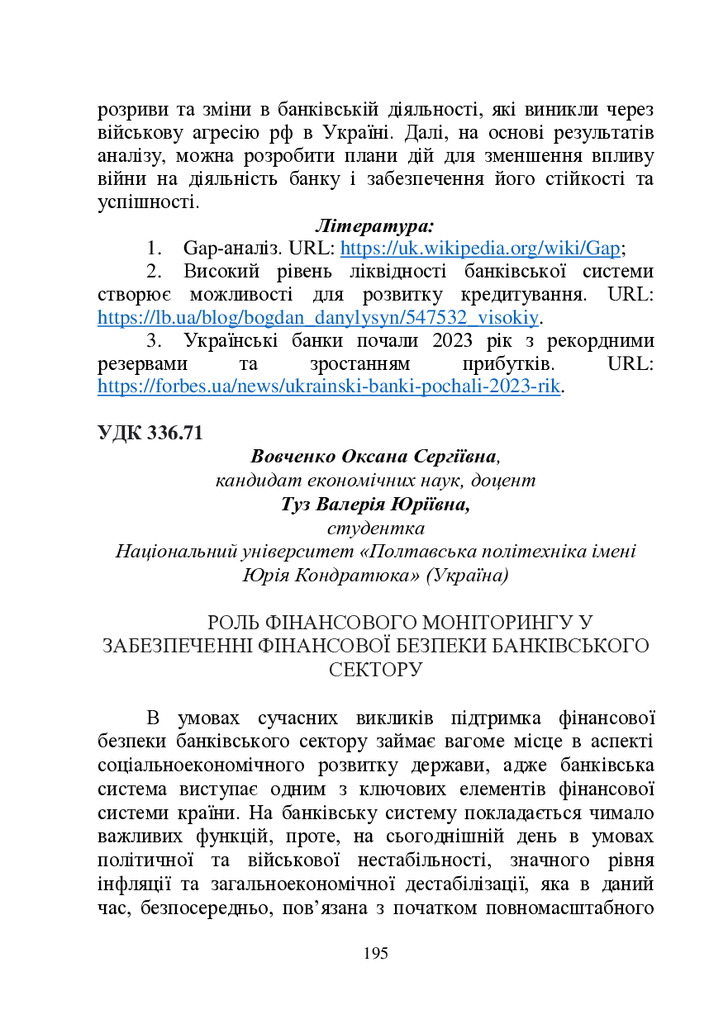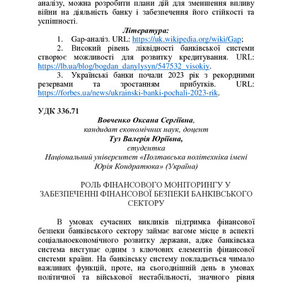 Роль фінансового моніторингу у забезпеченні фінансової безпеки банківського сектору