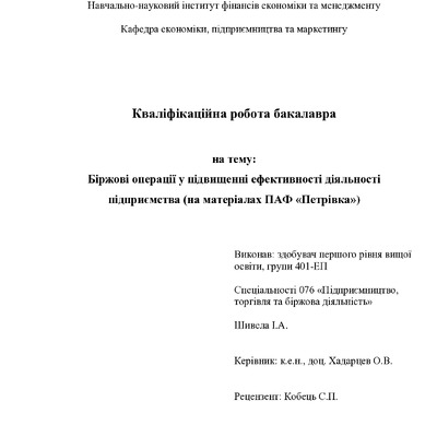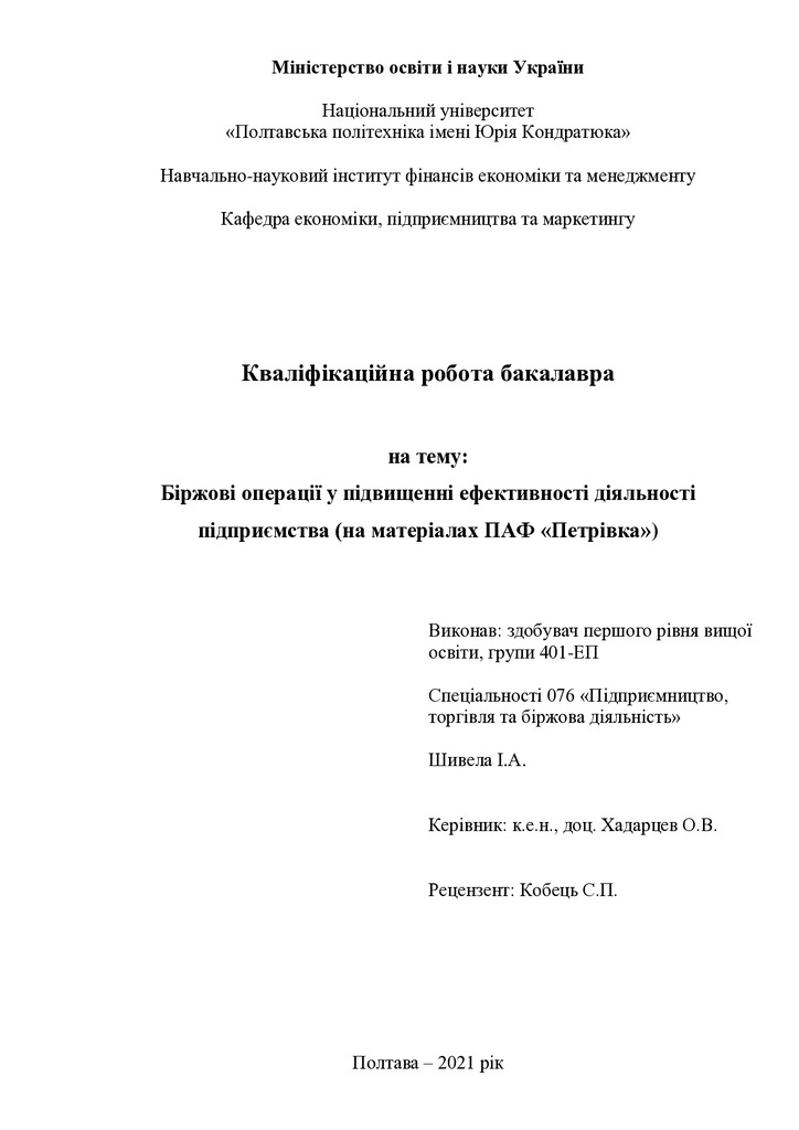 Біржові операції у підвищенні ефективності діяльності підприємства (на матеріалах ПАФ «Петрівка»)