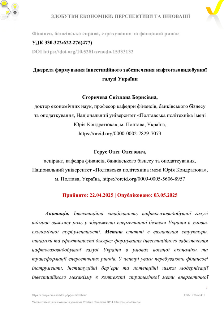 Джерела формування інвестиційного забезпечення нафтогазовидобувної галузі України