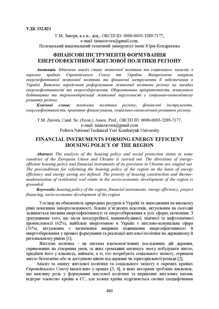 Стаття 2020/05/06Фінансові інструменти формування енергоефективної житлової політики регіону