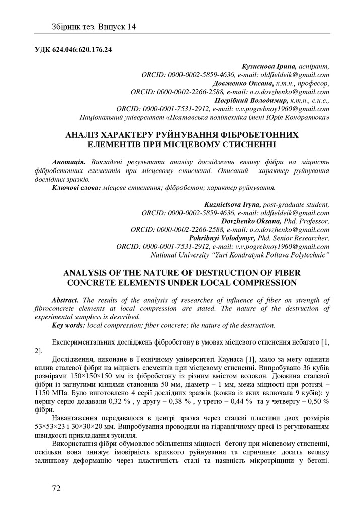 Аналіз характеру руйнування фібробетонних елементів при місцевому стисненні