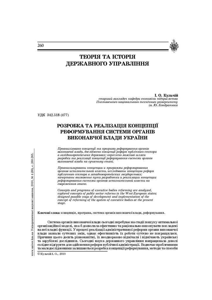 Проаналізовано концепції та програми реформування органів виконавчої влади; досліджено концепції реформ публічного сектора в західноєвропейських державах; окреслено можливі шляхи розробки та реаліз...