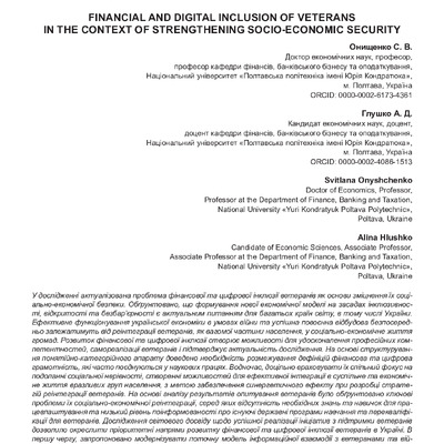 Фінансова та цифрова інклюзія ветеранів в аспекті зміцнення соціально-економічної безпеки