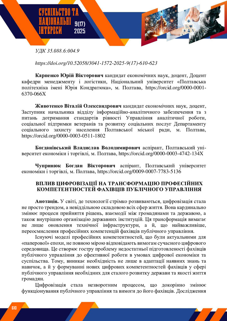 2026/02/02Вплив цифровізації на трансформацію професійних компетентностей фахівців публічного управління