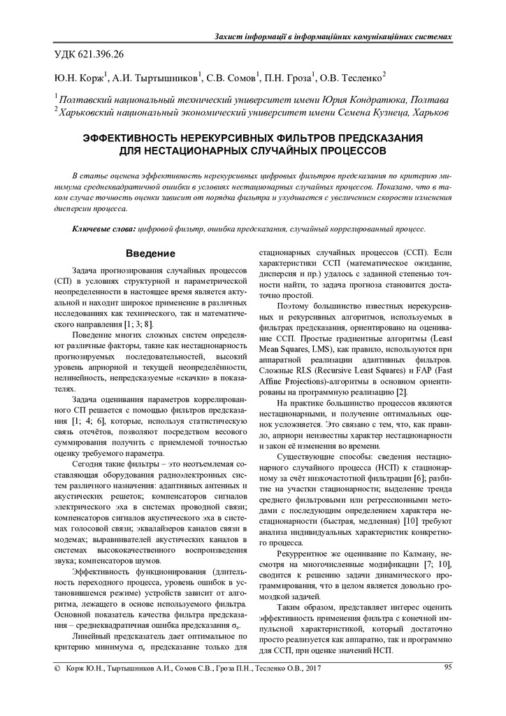 2017/09/25Эффективность нерекурсивных фильтров предсказания для нестационарных случайных процессов