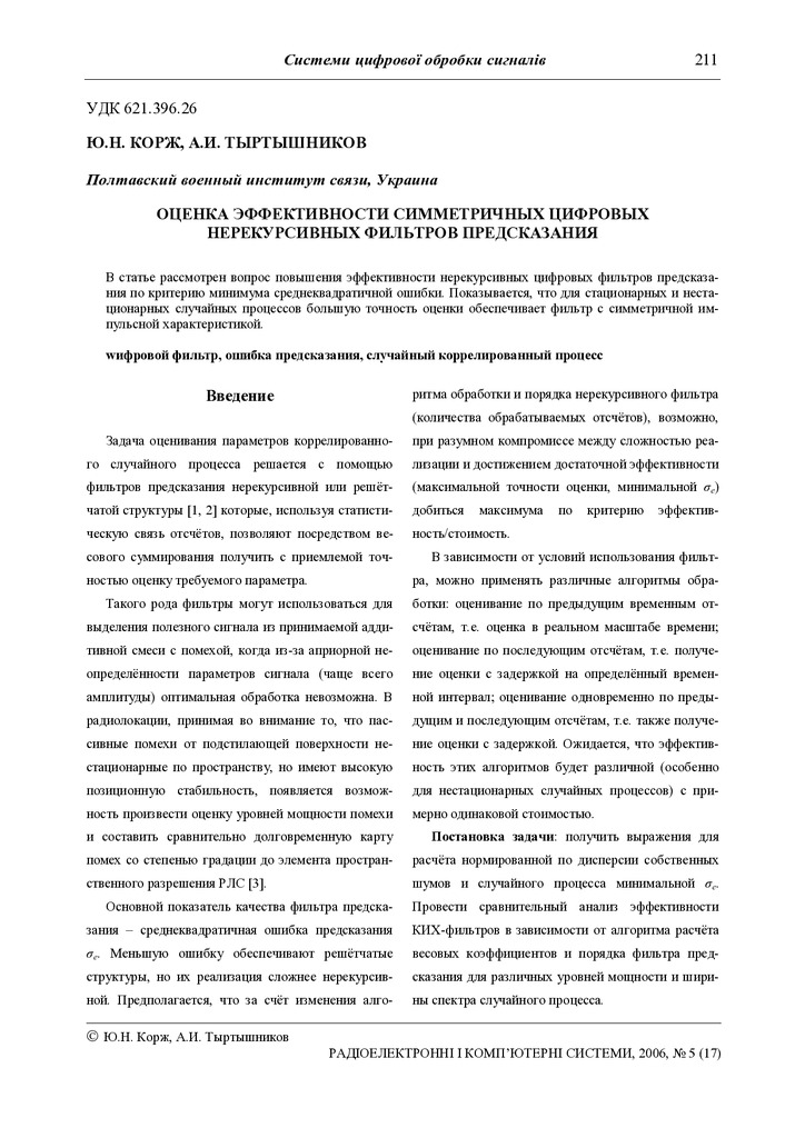 2017/10/10Оценка эффективности симметричных цифровых нерекурсивных фильтров предсказания