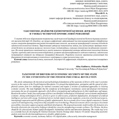 Стаття 2026/01/28Таксономія драйверів економічної безпеки держави в умовах Четвертої промислової революції