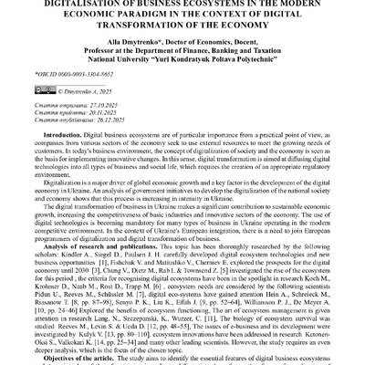 Стаття 2026/02/06Digitalisation of business ecosystems in the modern economic paradigm in the context of digital transformation of the economy