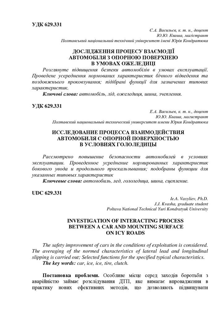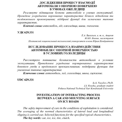 Дослідження процесу взаємодії автомобіля з опорною поверхнею в умовах ожеледиці