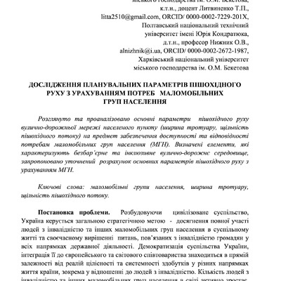 Дослідження планувальних параметрів пішохідного руху з урахуванням потреб маломобільних груп населення