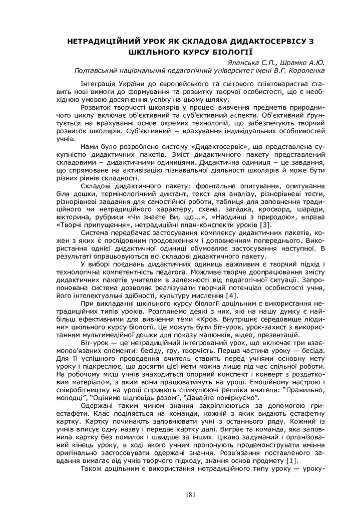 2020/04/21Нетрадиційний урок як складова дидактосервісу з шкільного курсу біології