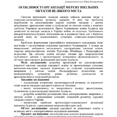 Особливості організації мережі шкільних об'єктів великого міста