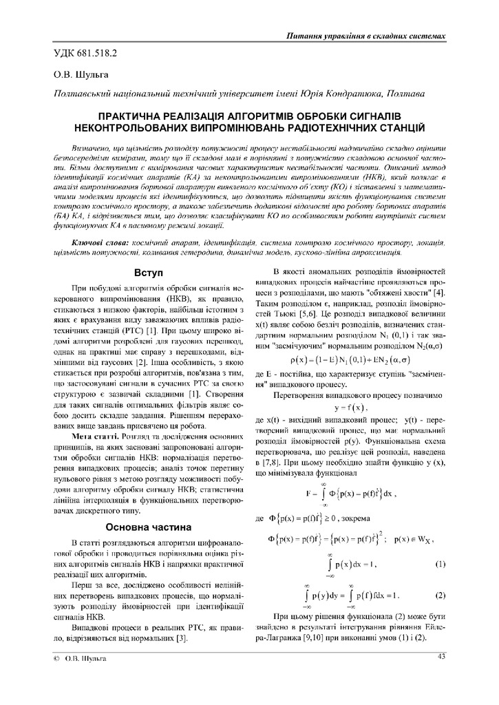 Стаття 2019/07/17Практична реалізація алгоритмів обробки сигранів неконтрольованих випромінювань радіотехнічних станцій