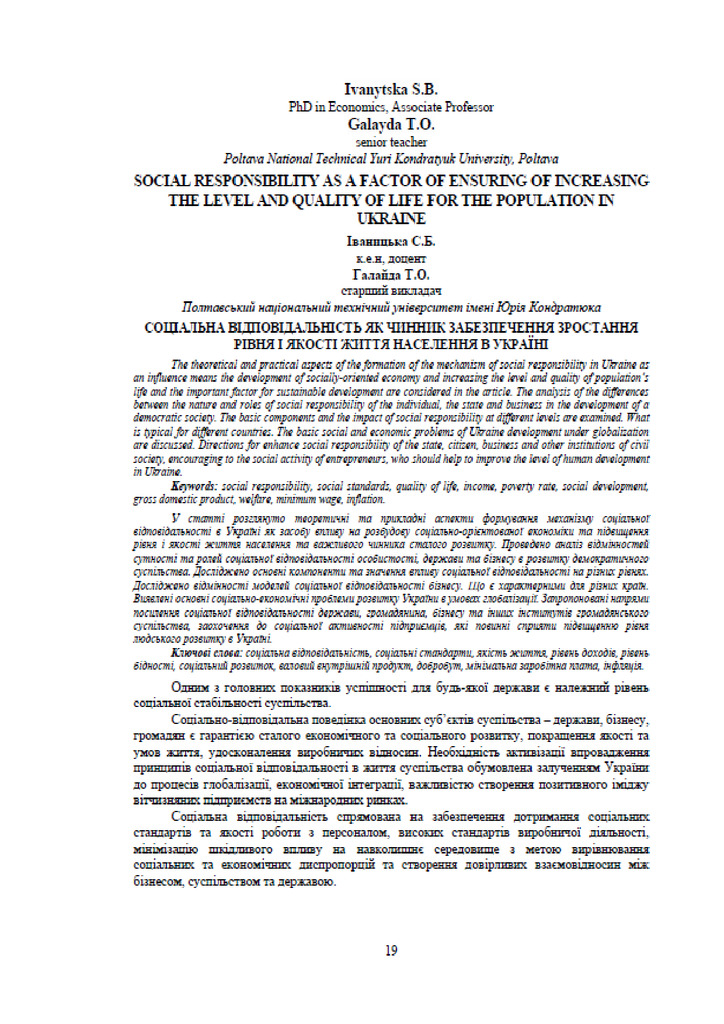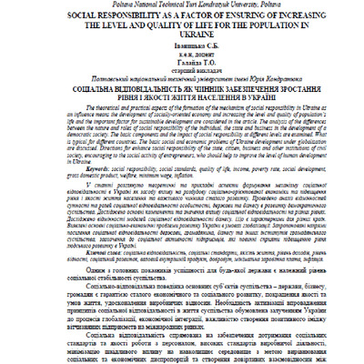 Cоціальна відповідальність як чинник забезпечення зростання рівня і якості життя населення в Україні
