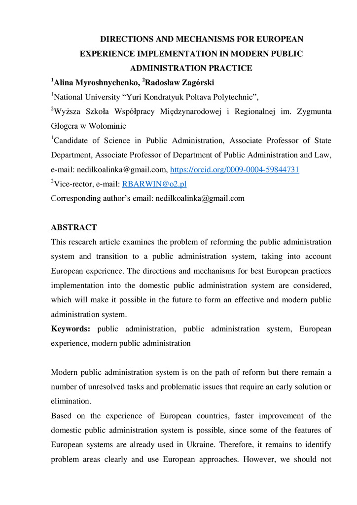 2024/04/22Directions and mechanisms for european experience implementation in modern public administration practice