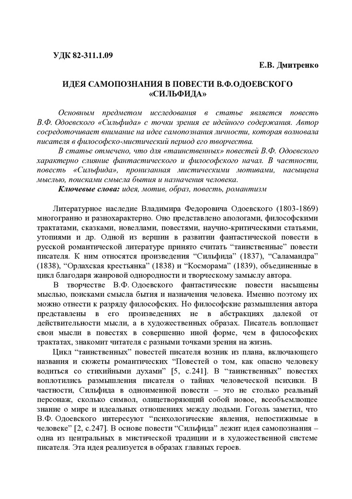 Стаття 2023/12/12Идея самопознания в повести В.Ф. Одоевского «Сильфида»