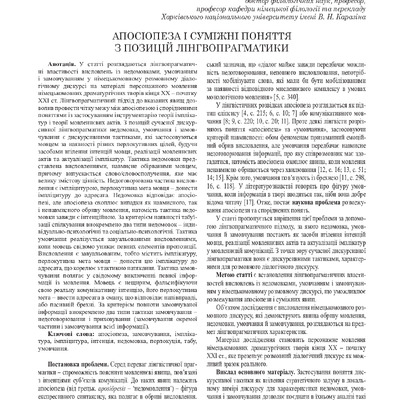 Апосіопеза і суміжні поняття з позицій лінгвопрагматики