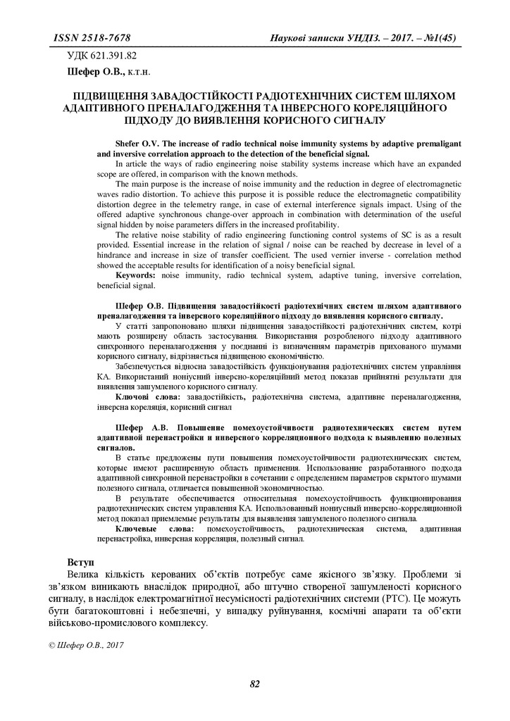 Підвищення завадостійкості радіотехнічних систем шляхом адаптивного преналагодження та інверсного кореляційного підходу до виявлення корисного сигналу