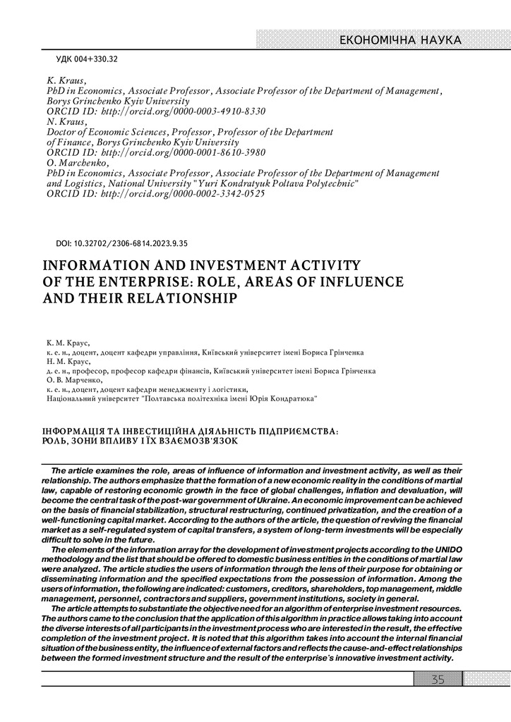 2024/05/24Information and investment activity of the enterprise: role, areas of influence and their relationship