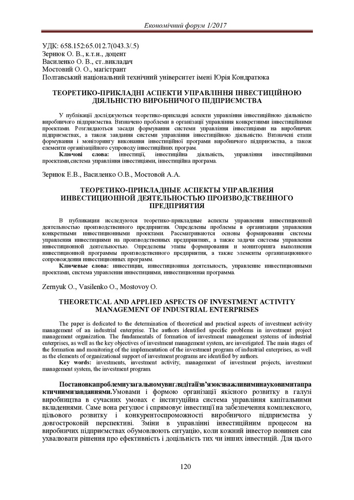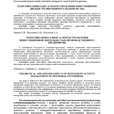 2018/12/20Теоретико-прикладні аспекти управління інвестиційною діяльністю виробничого підприємства