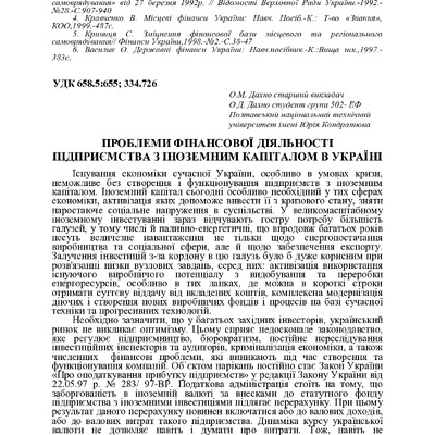 2018/11/13Проблеми фінансової діяльності підприємства з іноземним капіталом в Україні
