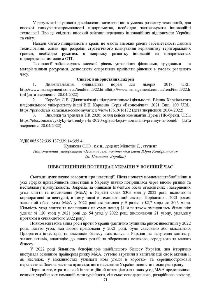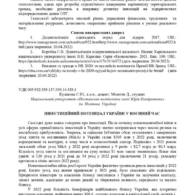 Стаття 2024/06/19Інвестиційний потенціал України у воєнний час