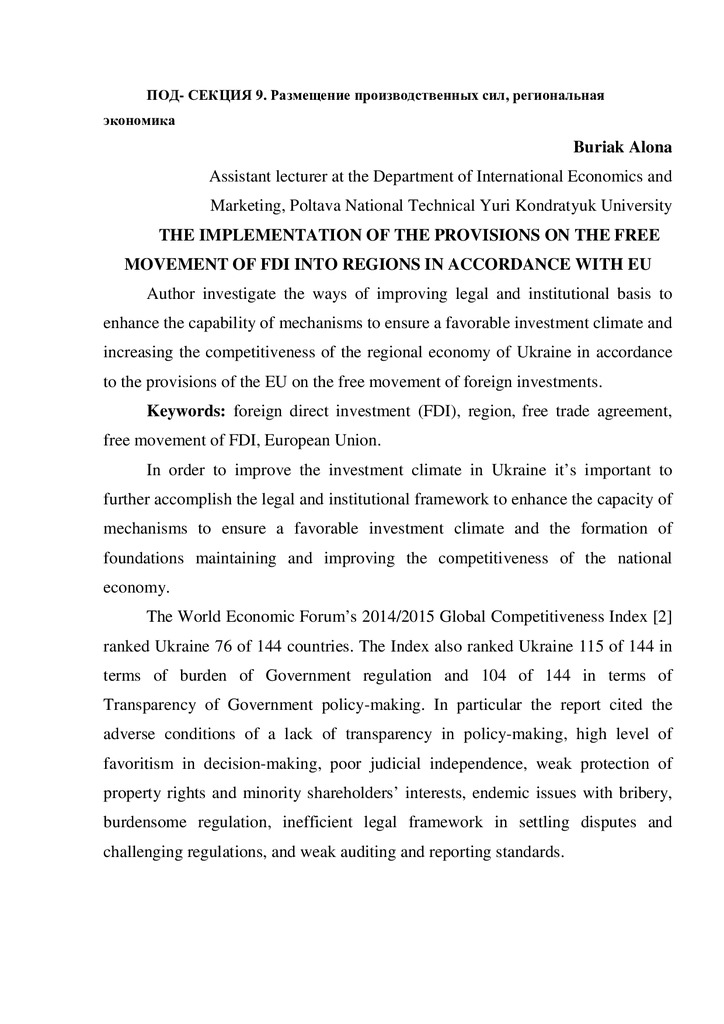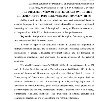Стаття 2017/02/02The implementation of the provisions on the free movement of FDI into regions in accordance with EU