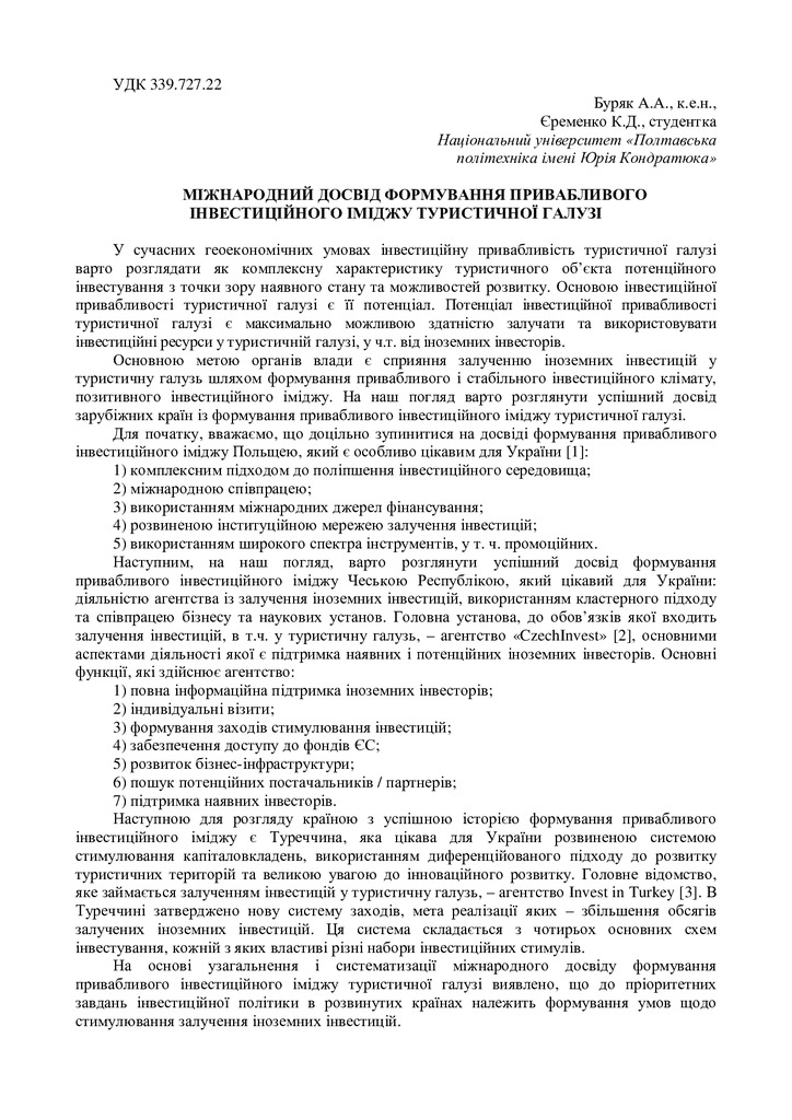 Стаття 2023/07/19Міжнародний досвід формування привабливого інвестиційного іміджу туристичної галузі