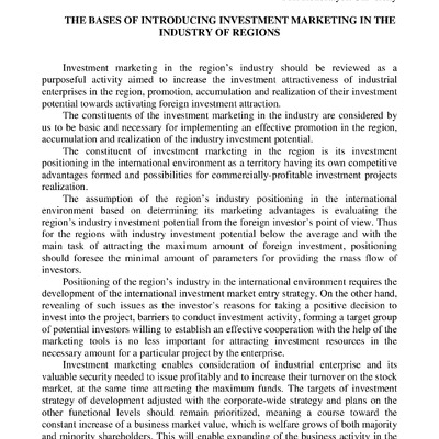 Стаття 2020/05/14The bases of introducing investment marketing in the industry of regions