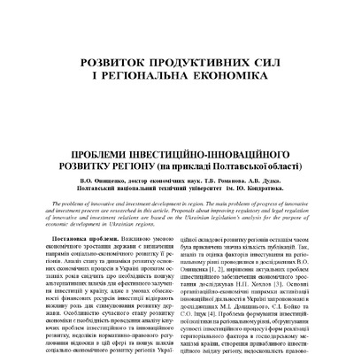 Стаття 2018/06/22Проблеми інвестиційно-інноваційного розвитку регіону (на прикладі Полтавської області)